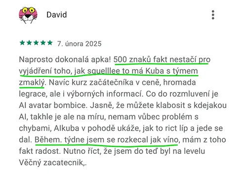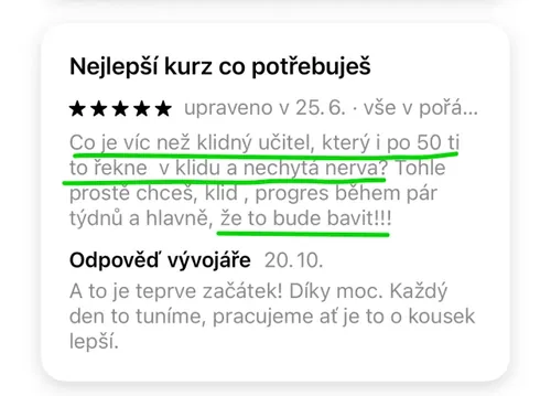 Nechci, abys jen klikal lekce. Chci, abys viděl reálnej posun! Pokud ne, vracím prachy.